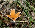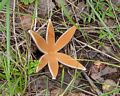 A Devil's Cigar fungus (Chorioactis geasteris.) It hisses with clouds of smoke-like spores when it opens into recurved rays three or four inches wide. I sometimes find them in December and January growing up from the decaying roots of cedar elm trees. It isn't found in situ very long as millipedes and other creatures apparently find it to be a delicacy. 12-12-06.