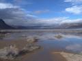 At first the day seemed disappointing. We had driven all the way from Austin, Texas to Death Valley and then over 27 miles of rugged gravel washboard road to see what had happened since last Spring's tracks of the sliding rocks on the desert playa lake bed. What did we find? An El Niño winter lake in the basin! Almost half and especially the southern end of the playa where the sliding rocks are found below the dolomite finger ridge was covered in water. We could barely see any tracks at all.